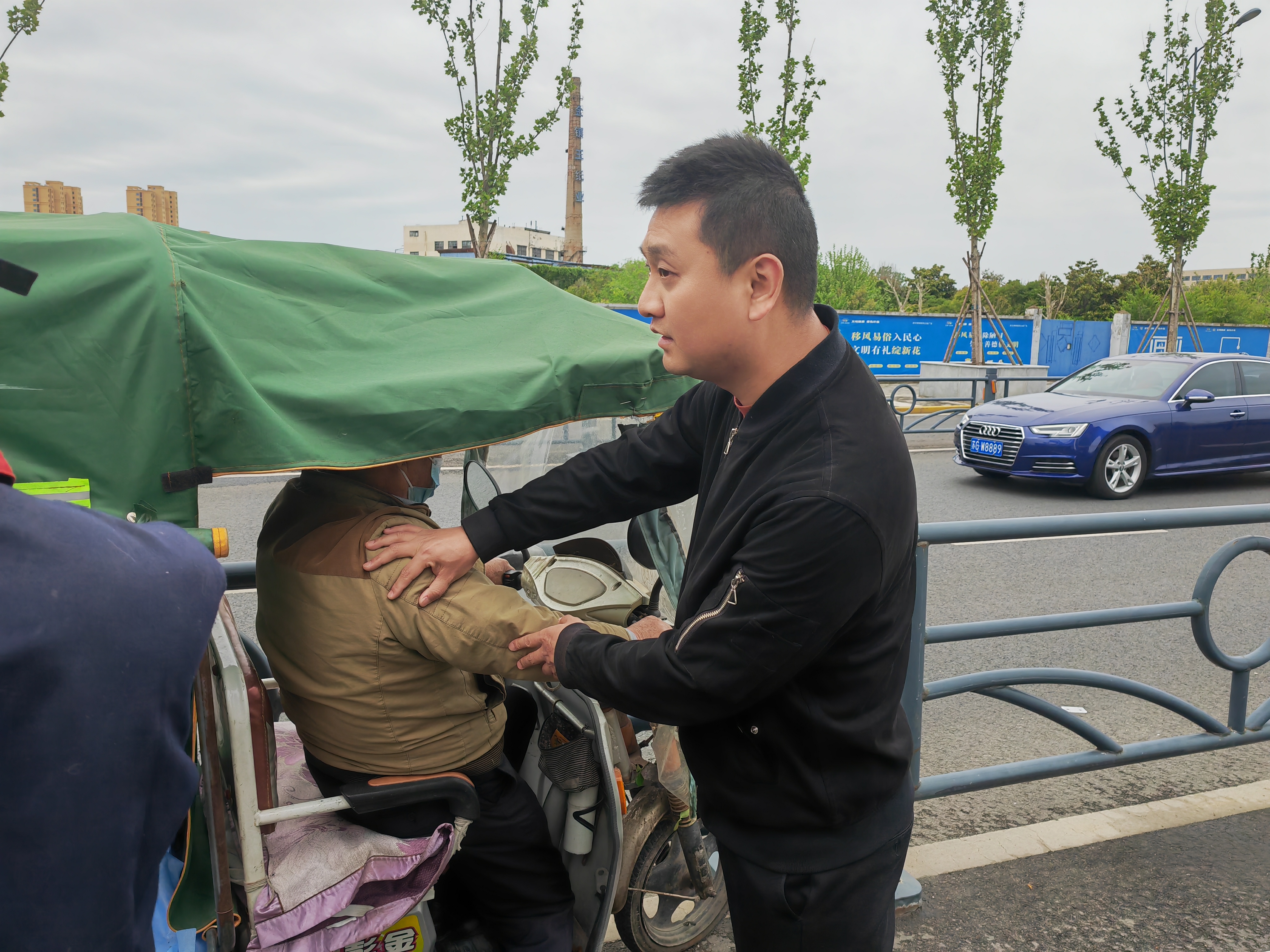 4月24日中午,交通华体会app最新版下载,华体会(中国)综合客运枢纽事业部工作人员方珑仍然坚守在巡查岗位上。巡查时,他发现路过的一名老人疑似突发疾病,驾驶的电动车摇摇晃晃即将失去控制。就在车辆撞向路边围栏的危急时刻,方珑箭步冲过去,第一时间控制住车辆并扶住老人以防坠落。短暂观察询问后,方珑发现老人已无法言语,且右侧身体动弹不得,情况紧急。方珑迅速拨打120,同时通过老人手机联系到其家人,随后凭借多年照顾父亲的经验为老人进行了及时的全身按摩和心理疏导,直至老人家属开车赶到。客运枢纽事业部的另一位工作人员林田阔闻讯赶来,二人将老人抬上车,并向120说明情况后,又投入到巡查工作中。