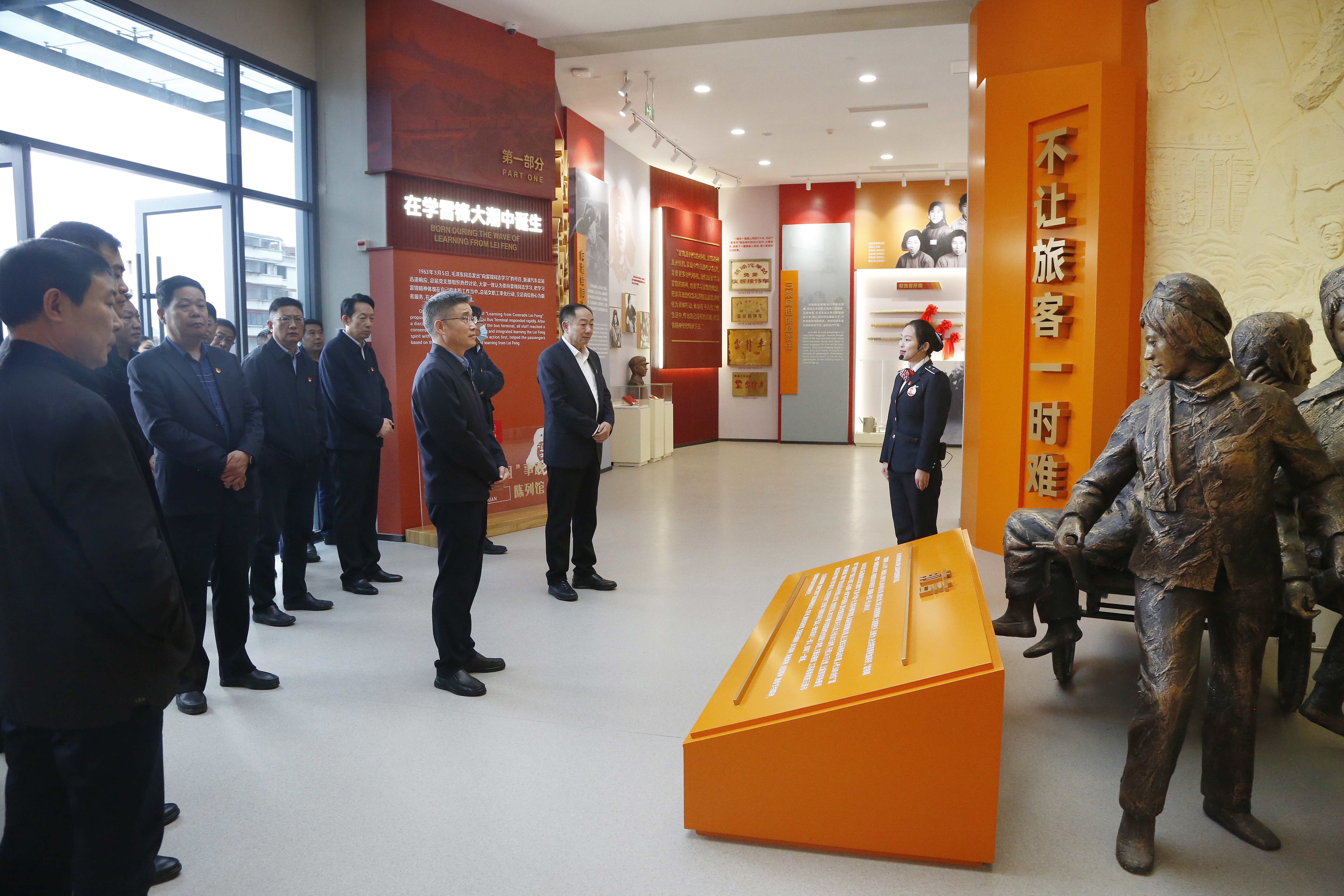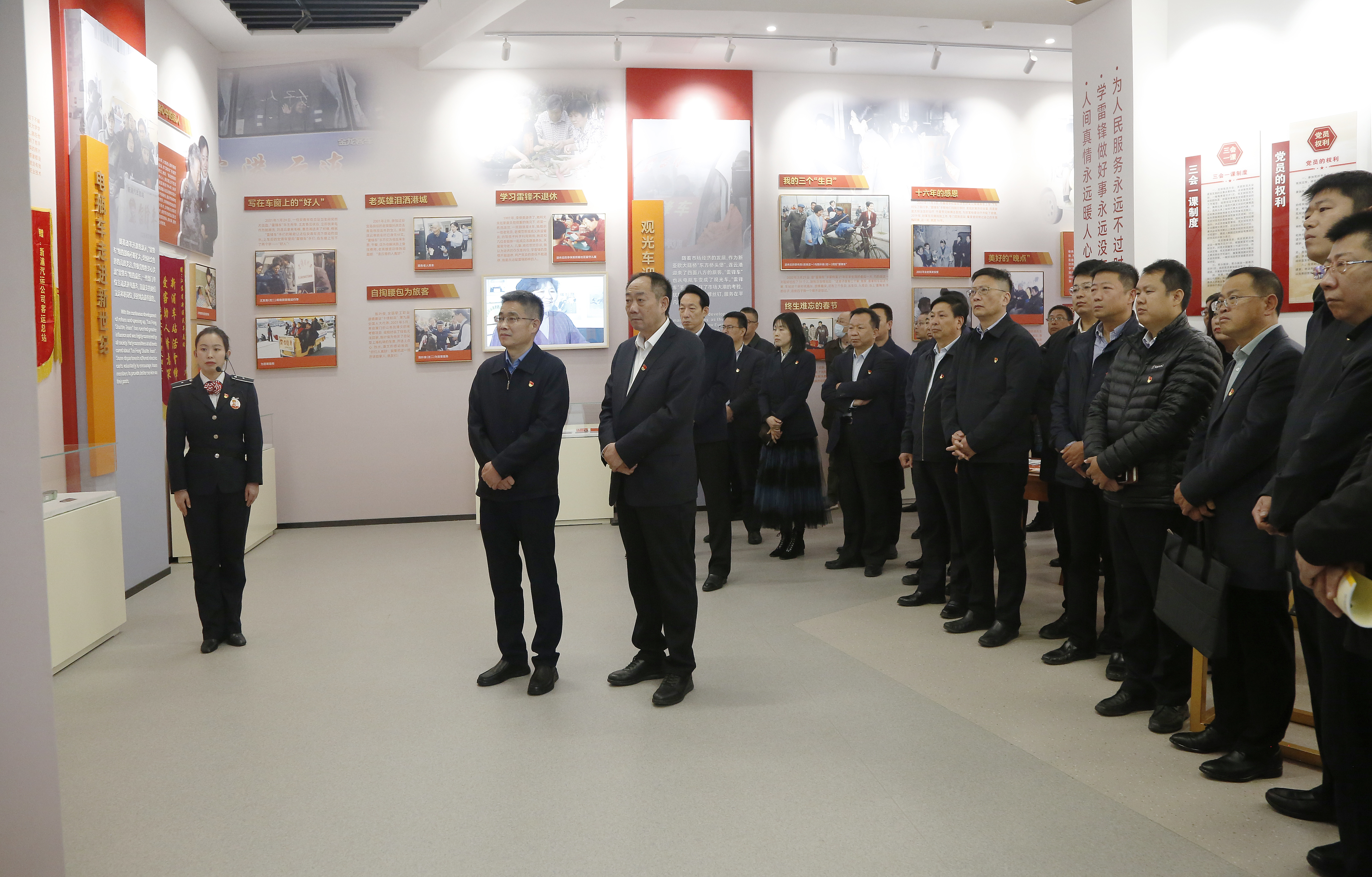 在“雷锋车”事迹陈列馆,通过讲解员生动地解说,党员干部全面了解了“雷锋车”组60年如一日,坚持不懈学雷锋,全心全意为人民服务的先进事迹,深刻领悟“雷锋车”组坚守初心、接续奋斗的担当精神;助人为乐、为民服务的奉献精神;团结协作、恪尽职守的敬业精神;奋发向上、勇争一流的进取精神。