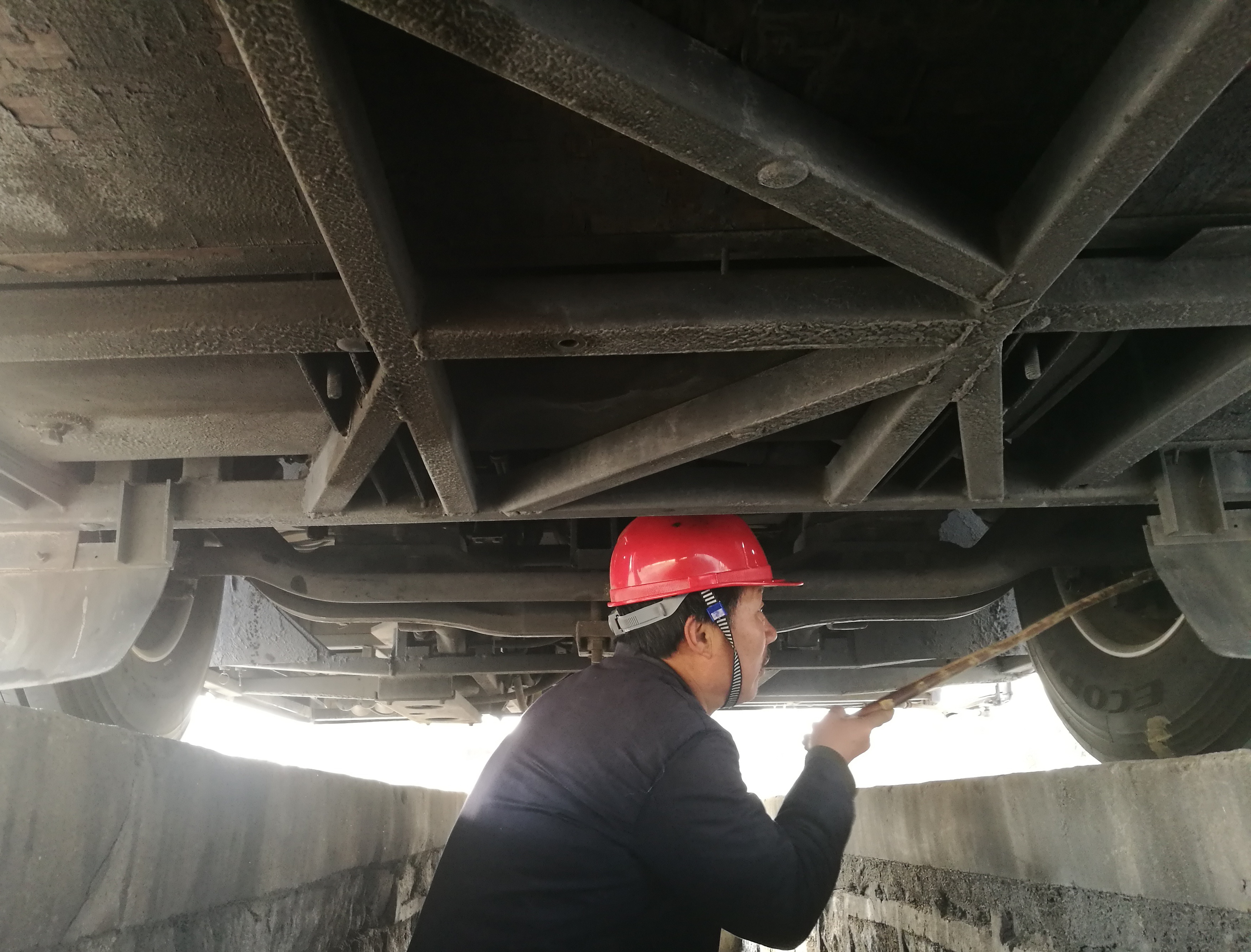 由于春运期间客流量大,车辆班次增多,安全检查是保障着我们交通安全出行的一个重要环节。为了加强车辆安全例检工作,东海公司安全例保员发扬吃苦耐劳精神,他们在每一个夜深人静的时候,默默地坚守在工作岗位上,逐一对每辆回库客运班车的底盘、刹车、转向部分、灯光、安全带、消防设施的重点部件进行认真仔细地检测维护。