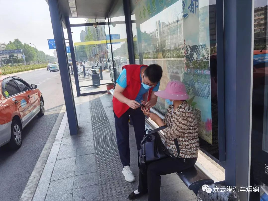 “大娘您好,您把手机给我,我来教您出示健康码。”“这位姑娘,车票可以从手机上操作购买,你回来的时候乘车就方便了。”“叔叔、阿姨,离发车还有20多分钟,先坐在这里等一会儿吧。”在连汽苏欣快客站内,值班站长苏信正在忙碌地招呼旅客,帮助他们解决遇到的各种问题。