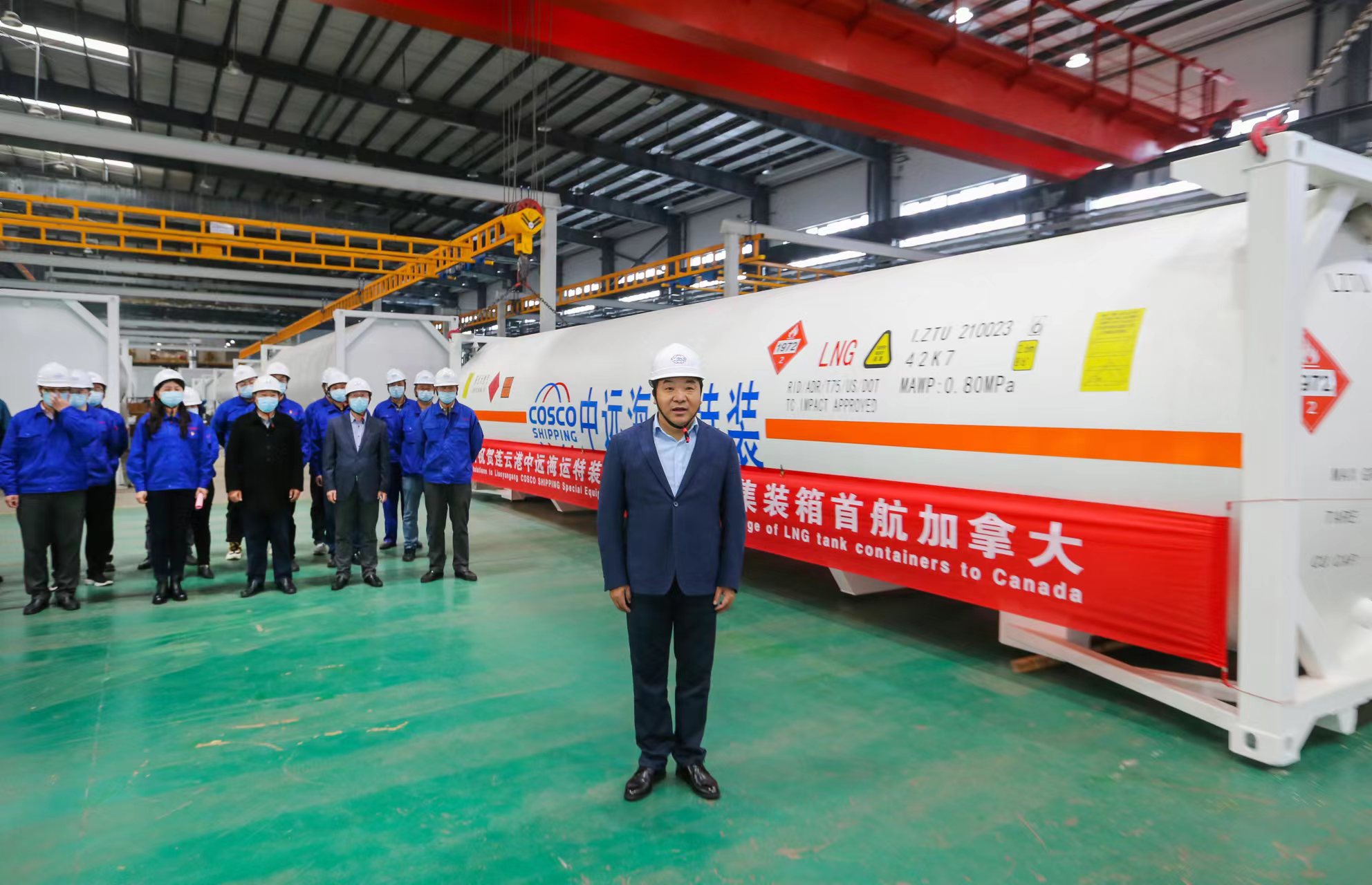 11月24日下午,交控物流华体会app最新版下载,华体会(中国)LNG罐式集装箱首航加拿大发运仪式在中远海运特装公司成功举办,交控物流华体会app最新版下载,华体会(中国)总经理张国兴、副总经理左志军、总经理助理王高林及相关部室负责人、特装公司部分领导班子人员参加。
