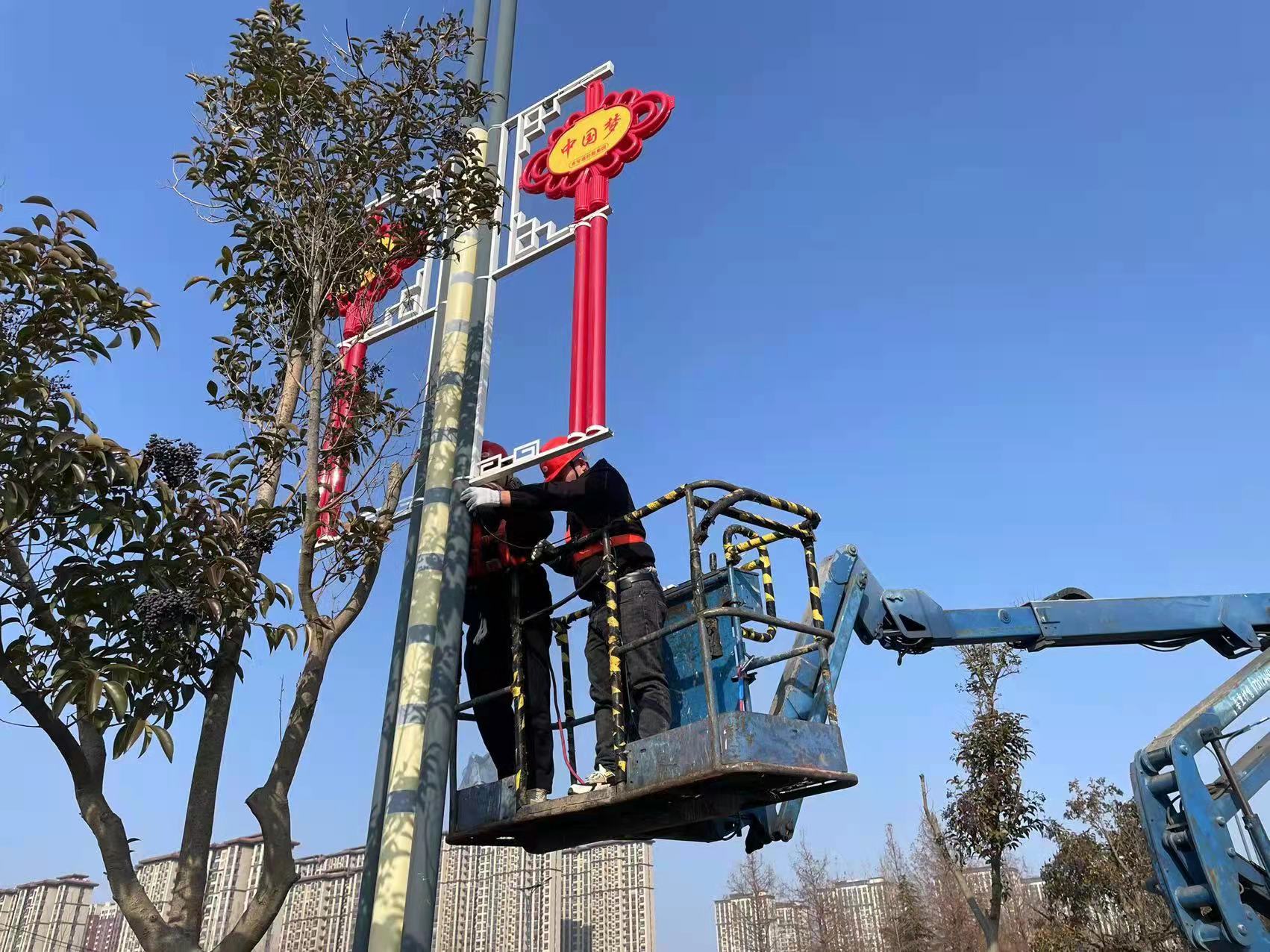 为丰富广大市民群众新春佳节文化生活,营造欢乐祥和、文明和谐的节日气氛,在疫情防控期间进一步振奋精神、坚定信心、鼓舞斗志、凝聚力量,近日,交通华体会app最新版下载,华体会(中国)积极落实市政府责任分工要求,在花果山大道(朝阳东路——港城大道)的路灯杆上进行了中国结灯饰悬挂工作。