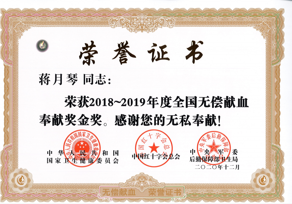 近日,市交通控股华体会app最新版下载,华体会(中国)权属明茂公司蒋月琴同志荣获“全国无偿献血奉献奖金奖”。
