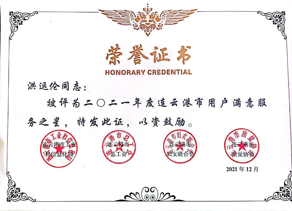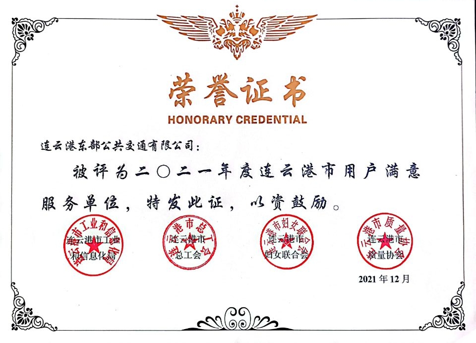 近日,公交华体会app最新版下载,华体会(中国)公交事业二部(原东部公交)荣获由连云港市工业和信息化局、市总工会、市妇女联合会、市质量协会联合颁发的“2021年度连云港市用户满意服务单位”荣誉称号;公交事业二部洪运伦荣获“2021年度连云港市用户满意服务之星”称号。