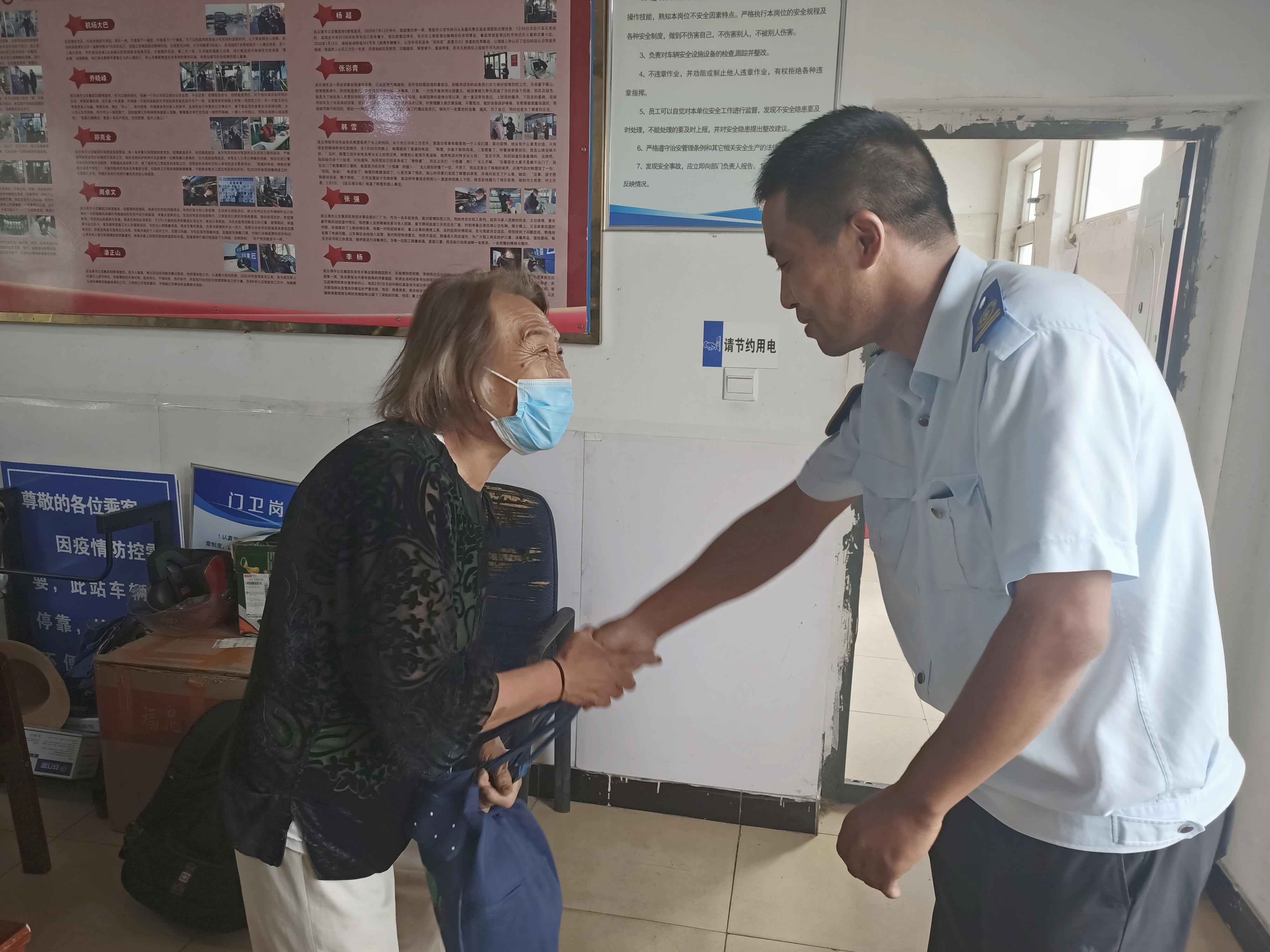 当李奶奶到东城调度室领取丢失的包时,激动地握着韩军师傅的手连声表示感谢。李奶奶说她今年已经81岁了,身体还行,就是记性不太好。当她发现包丢了时,心里特别的慌,腿都有些发抖。但她特别庆幸自己今天遇到了好人,不仅遇到拾金不昧的好心驾驶员,让她避免了损失,还在站台遇到热情帮助她寻找东西的站务员,站务员看她年纪大,担心她找不到东站,便自掏腰包为她垫付2元车费让她坐车来东站。李奶奶表示,这种全心全意为老百姓着想的服务精神让她特别感动,感谢公交公司培养出如此优秀的员工为人民服务,为驾驶员点赞,为站务员点赞,为如此优秀的公交服务点赞!