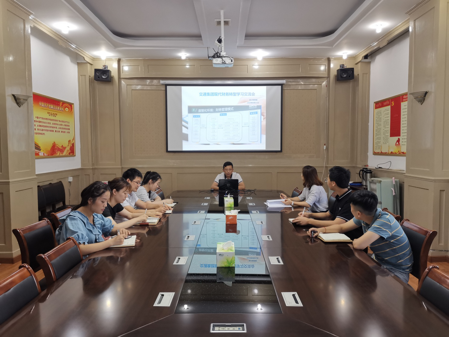 8月31日下午,交通华体会app最新版下载,华体会(中国)审计核算部组织全体会计人员参加“现代财务转型”学习交流会。本次学习交流会主要以上海会计学院杨寅副教授课件为题材,从智能化与数字化视角出发,重点解读现代财务转型目标、数智化背景下财务转型思路、智能财务理论与实务及各案例的解剖分析。