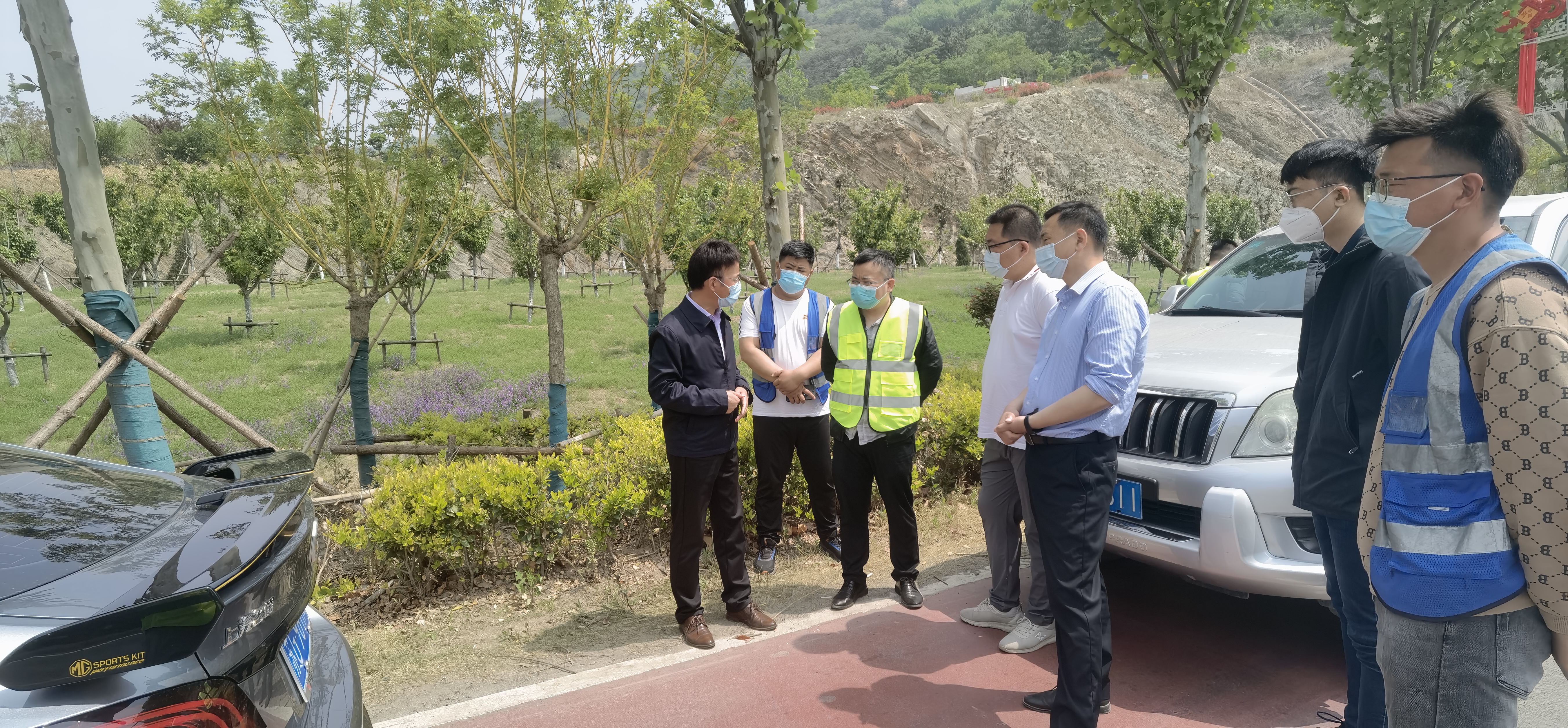 4月26日,交通华体会app最新版下载,华体会(中国)总经理宣有金、副总经理顾卫星来到园博园外围环境整治提升(徐新路)工程施工现场,检查项目推进情况,并现场进行了督导。