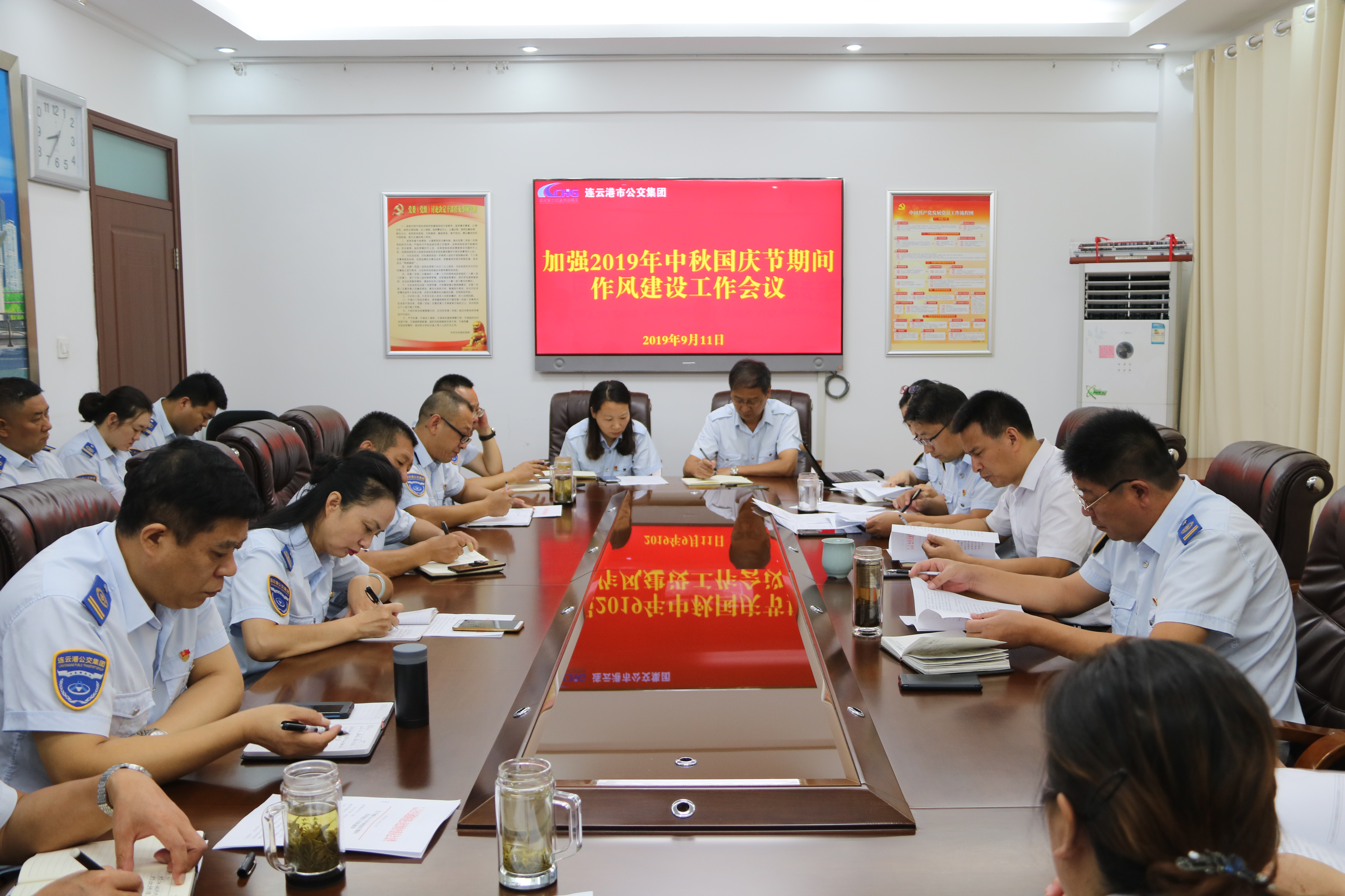 会议传达了连云港市交通控股华体会app最新版下载,华体会(中国)《关于加强2019年中秋国庆节日期间作风建设工作的通知》精神,安排部署了公交华体会app最新版下载,华体会(中国)两节期间作风建设工作,明确中秋国庆两节期间党风廉政建设工作要求,打好节日廉洁“预防针”。