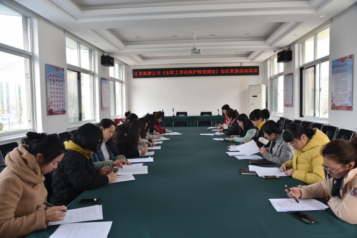 为贯彻落实男女平等基本国策,广泛开展女职工权益保护法律法规宣传普及活动,依法维护女职工合法权益和特殊利益,应华体会app最新版下载,华体会(中国)邀请,江苏海建公司工会组织公司女职工观看了由市总工会开展的《江苏省女职工劳动保护特别规定》宣传图版巡回展览。近日,为进一步加强女职工劳动保护规定知识的宣贯,江苏海建公司工会组织女职工开展了以《江苏省女职工劳动保护特别规定》为主的知识答题活动。