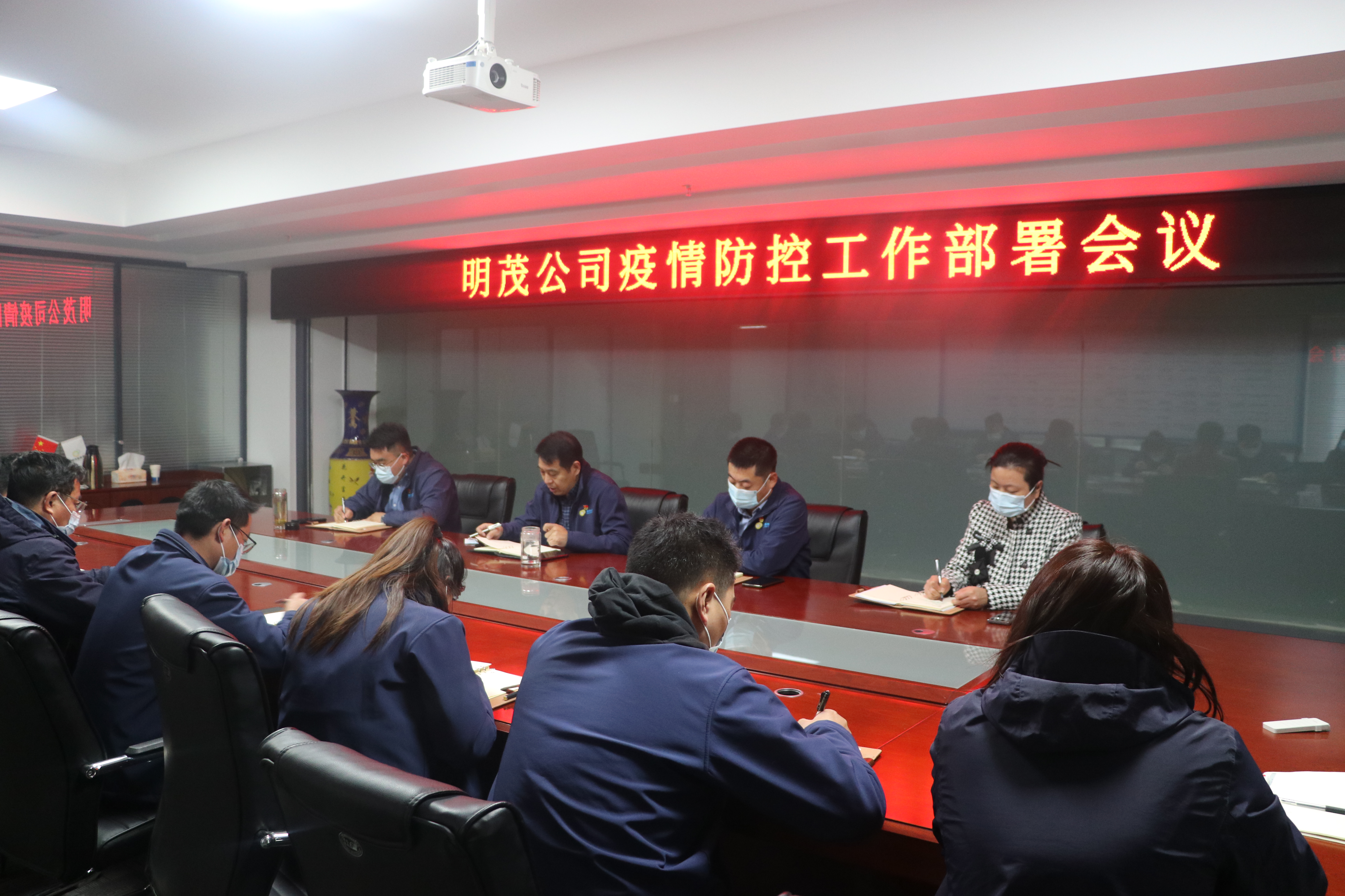 11月15日上午,明茂公司召开疫情防控工作部署会,公司领导班子成员、各部门、各单位负责人参加了会议。会议由公司党总支书记、总经理袁军主持。
