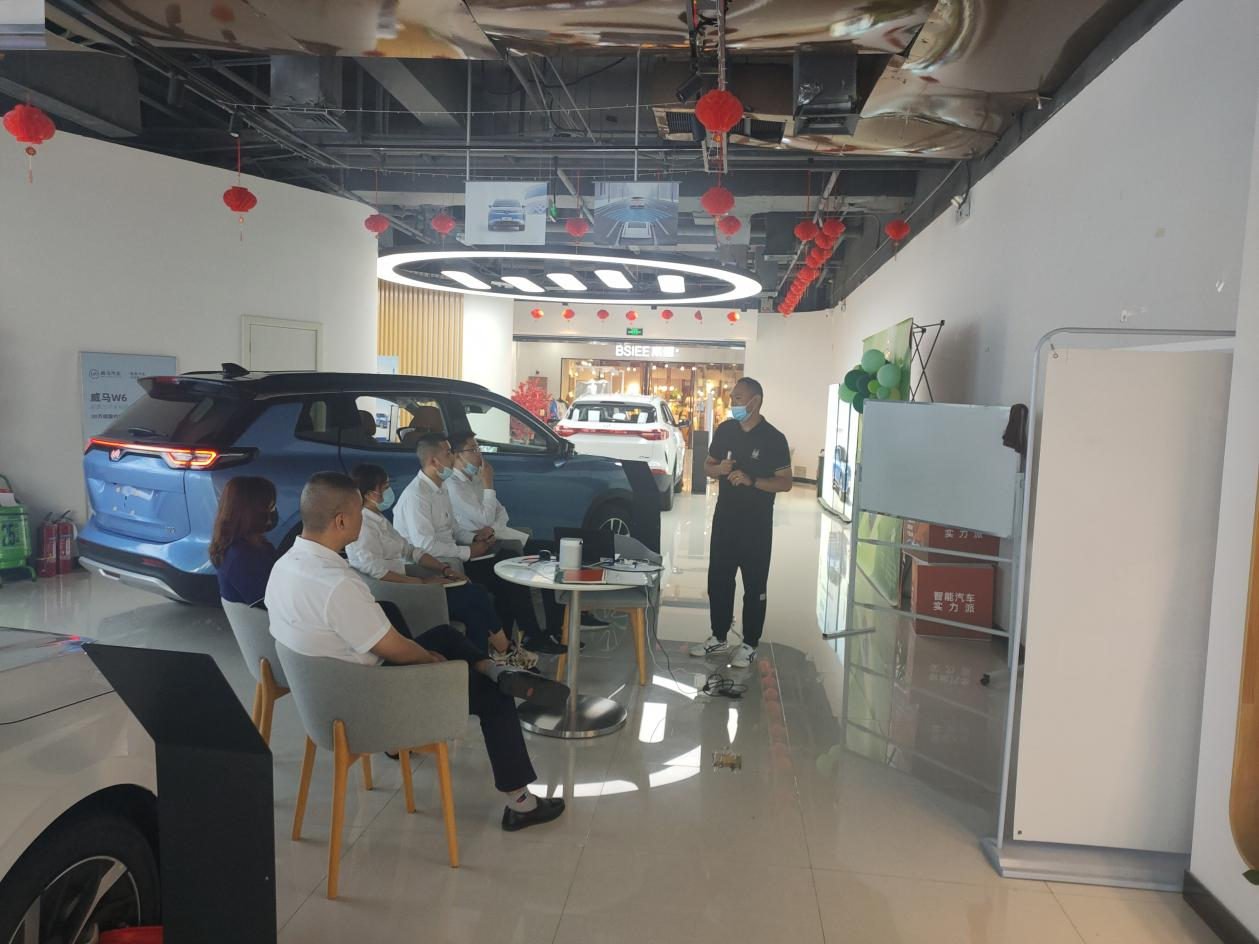 培训中胡烺首先对销售顾问试驾基本销售技巧和现有车型性能掌握等情况进行了了解,然后从销售顾问基础实操、深度试驾解说、互动看车话术以及接待等方面进行了全方面培训。本次培训,更好的提高了威马汽车销售顾问的服务理念和销售技巧,为提高订单成交率与客户满意度提供了有力保障。