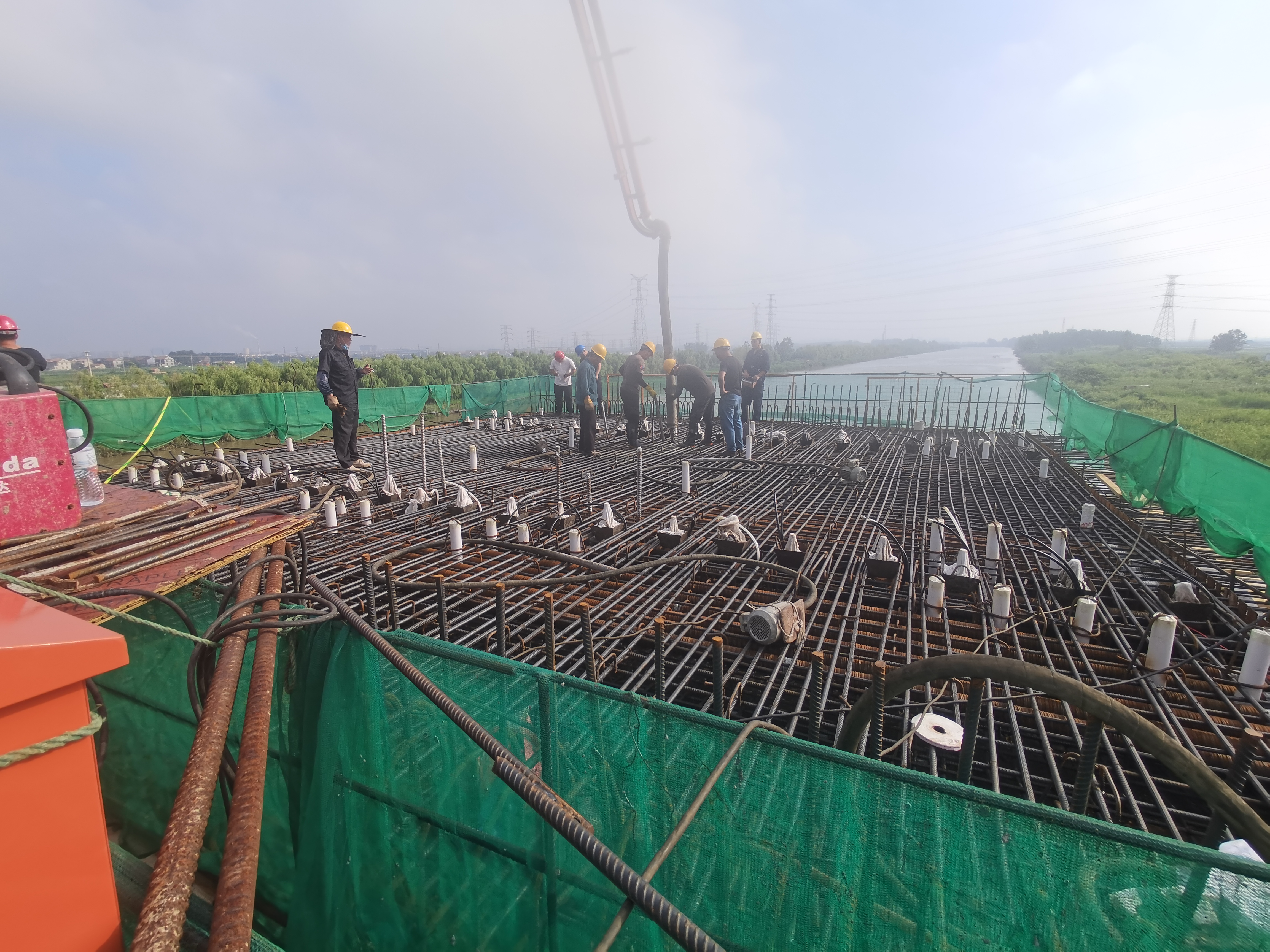 731日上7在江苏海建公司402省道赣榆南环段路基桥涵工程施工现场,经过6小时的持续作战,随着上部结构变截面连续箱梁0#块变截面箱梁的成功浇筑,开启了桥梁上部结构变截面预应力箱梁施工的大门,标志着桥梁施工进入新阶段。