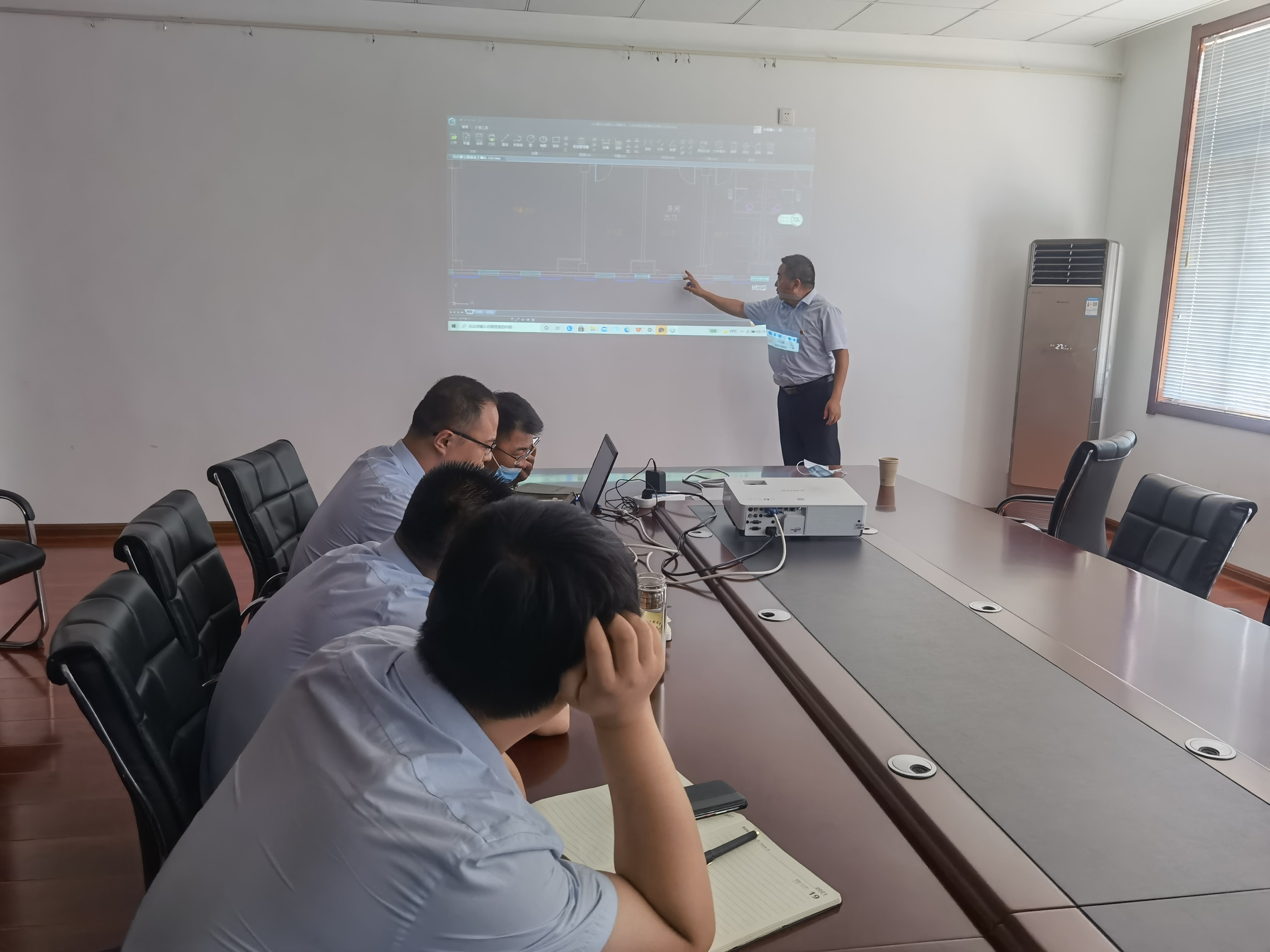 会上,储备站事业部汇报了LNG储配站项目推进情况,代建单位对项目总图方案及综合楼结构方案进行了介绍,与会人员针对方案功能布局、规划建设及可行性等方面进行了深入研讨。