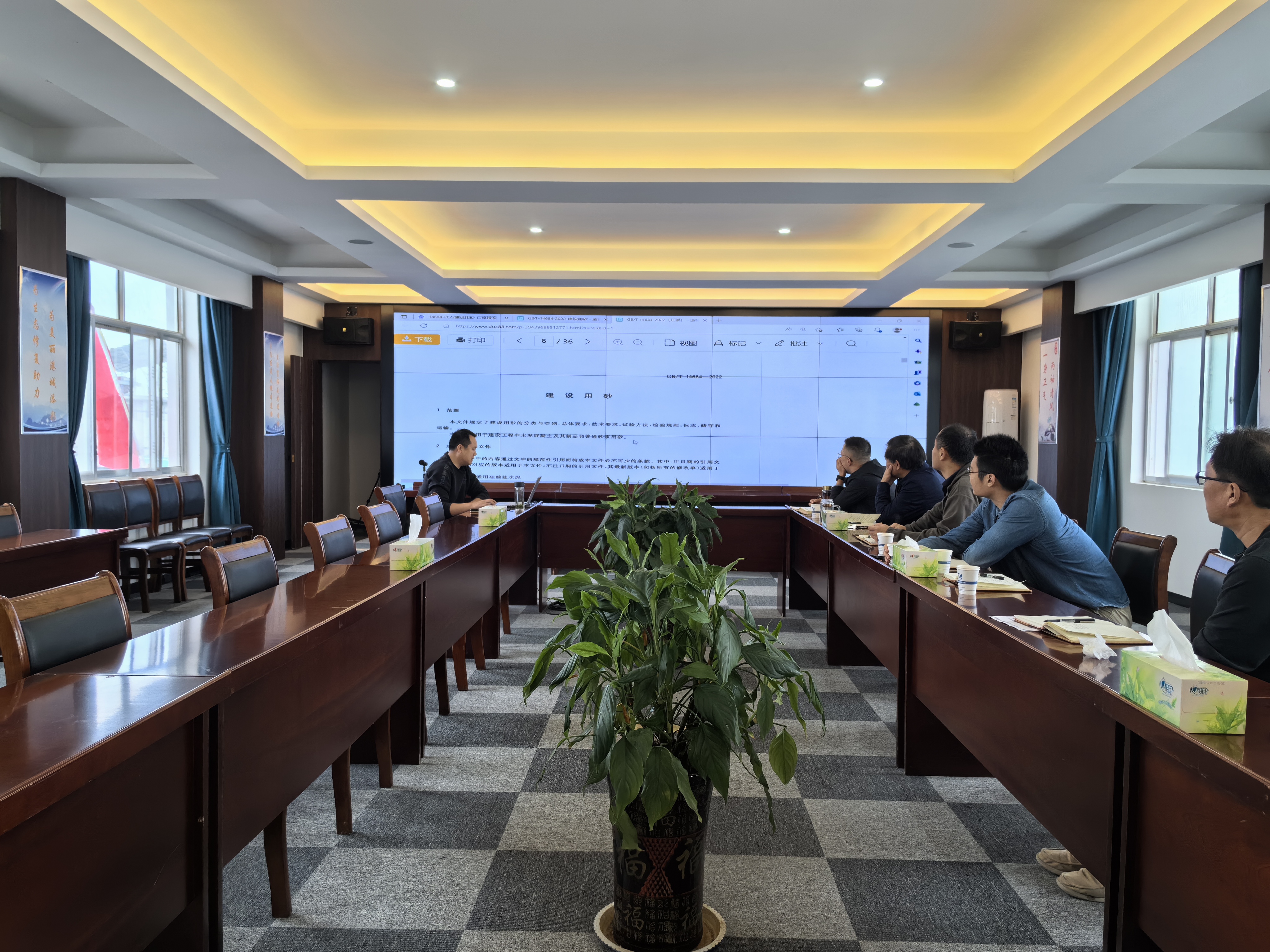 会上,王兵深入浅出地就建设用砂的分类与类别、总体要求、技术要求、实验方法、检验规则等内容进行了详细讲解,并就石梁河周边市场潜在客户的需求进行分析、交流,以便产品布局更加贴合市场要求。