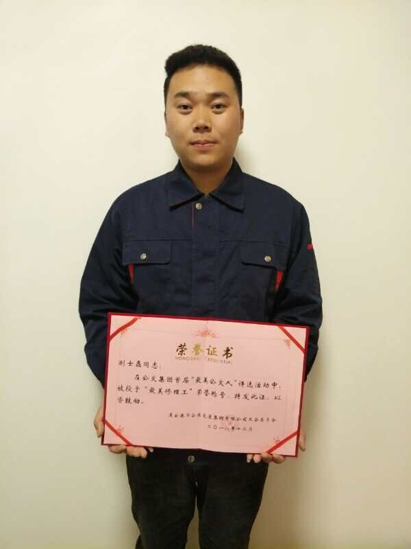 尽管别士磊不善言谈,平时也只是默默做着修理工作,可是他却勤于学习,苦于钻研,懂得珍惜,他的工作目标就是干好自己的本职工作,不放过待修车辆的每一个问题,也正是因为他细心、耐心的做好本职工作,在2018年公交华体会app最新版下载,华体会(中国)举办的首届“最美公交人”颁奖典礼暨迎新春职工文艺汇演中,他获得了最美修理工的称号。