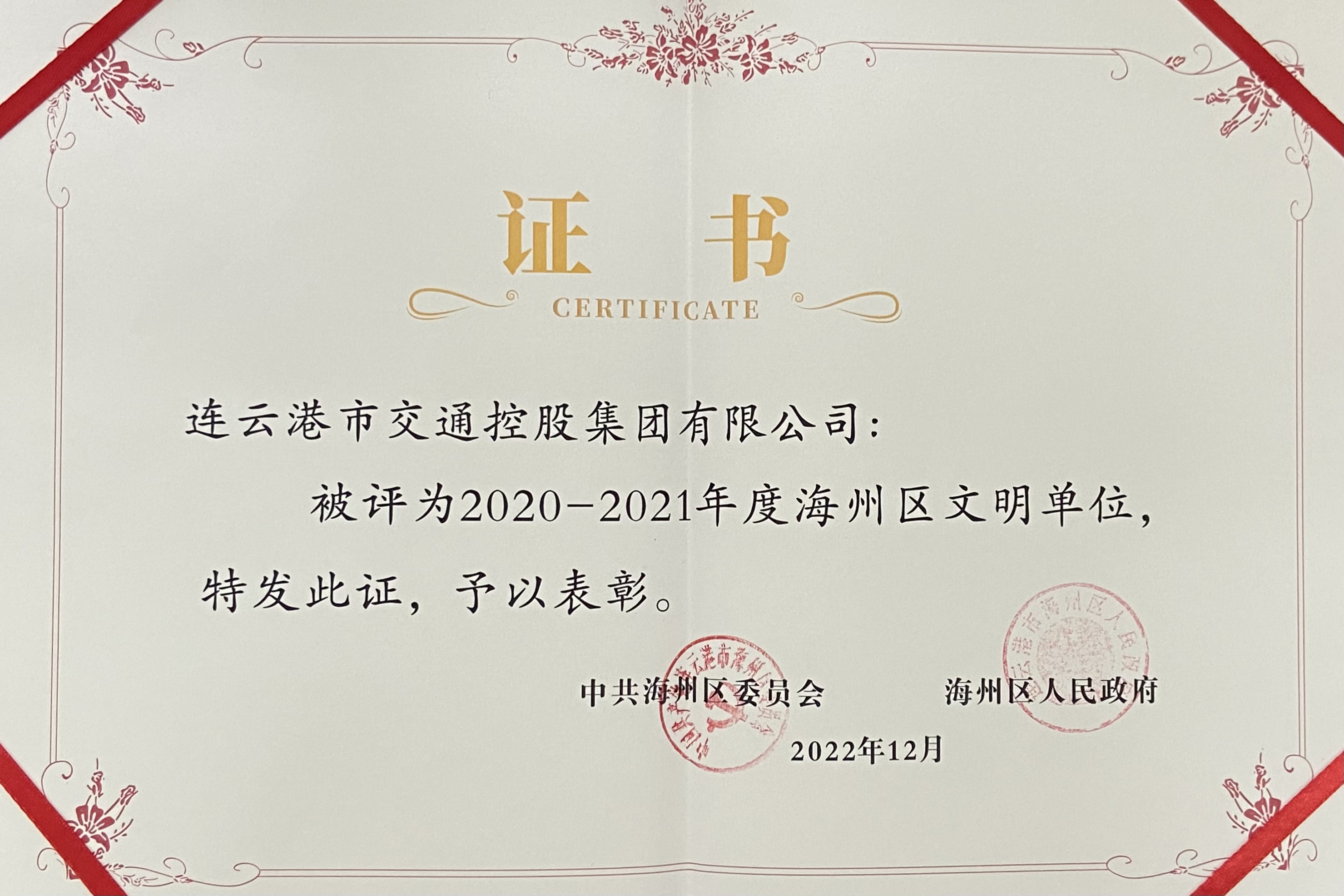 日前,中共海州区委、海州区人民政府授予以下华体会app最新版下载,华体会(中国)及权属单位2020-2021年度海州区文明单位荣誉称号: