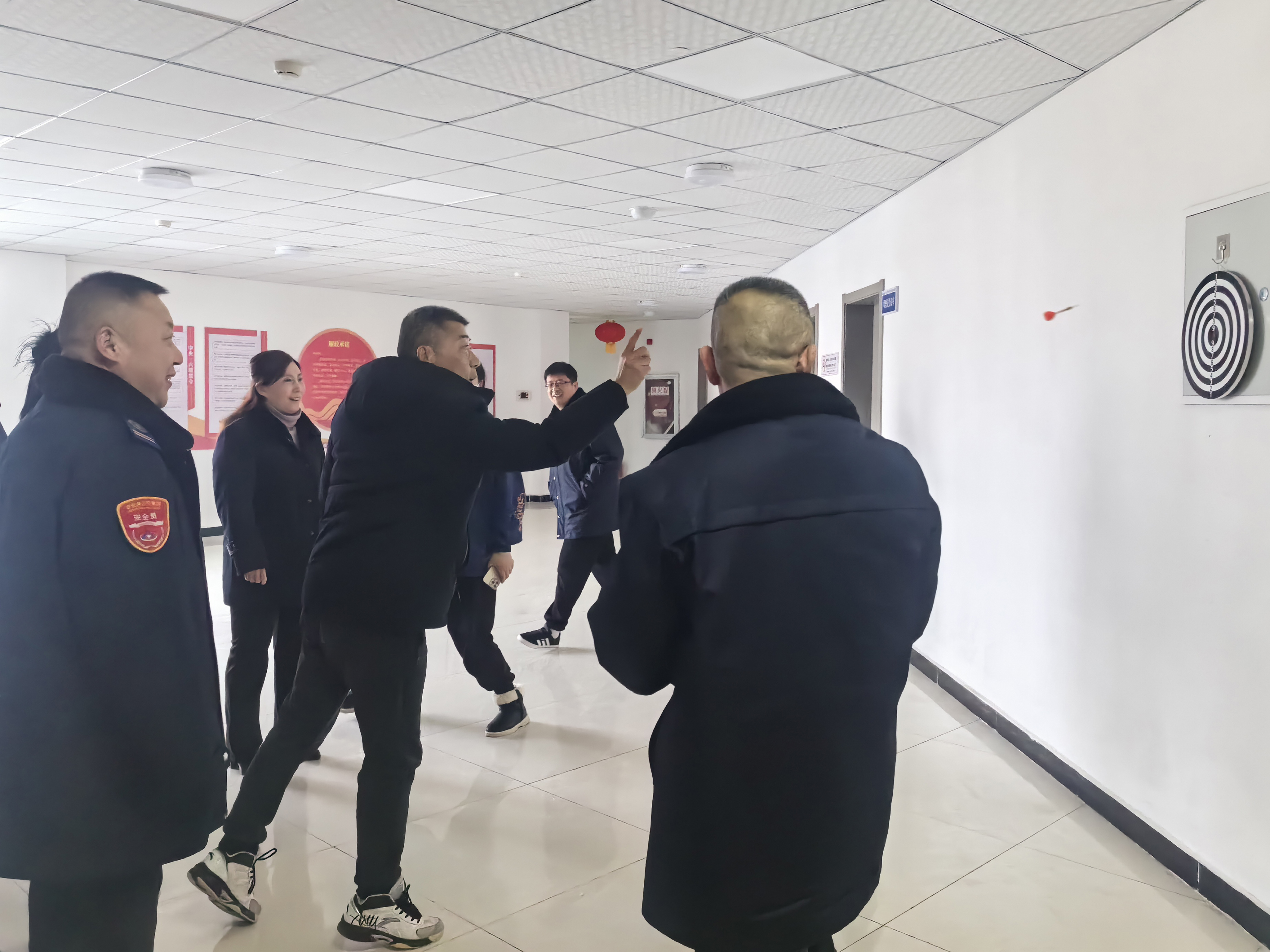 飞镖参赛者们也纷纷按照比赛顺序排好队,蓄势待发,职工们摩拳擦掌,各显身手、跃跃欲试,目标瞄准靶心,眼明手稳,“嗖嗖嗖”连发三标,镖镖中靶。比赛现场气氛异常热烈,大家积极踊跃,笑容满面,精神抖擞,神情专注,激烈竞争中不忘携手互相鼓励。这些趣味运动,如跳绳和飞镖,考验着个人技术和能力,如掼蛋比赛,更是考验选手的团结与整体协作。经过一番激烈的角逐,最终角逐出了一、二、三等奖。