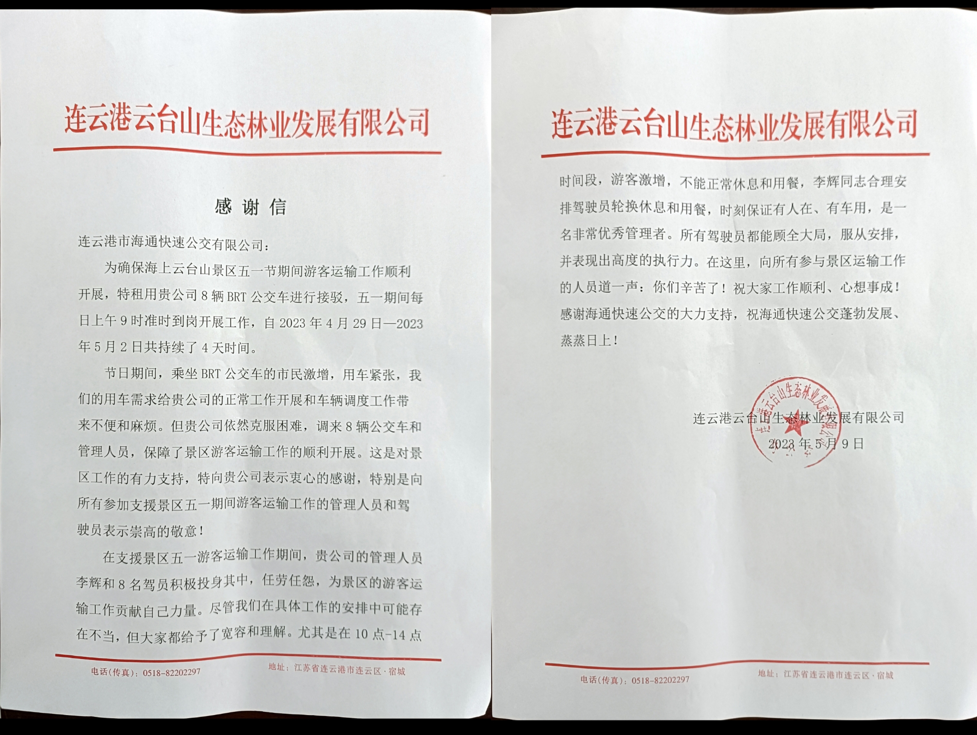 云台山景区的这封感谢信不仅拉近了景区和公交华体会app最新版下载,华体会(中国)之间的距离,也充分彰显了公交华体会app最新版下载,华体会(中国)的企业形象。在未来的工作中,公交华体会app最新版下载,华体会(中国)将继续秉承服务至上的原则,全力以赴为游客提供更优质的出行服务。