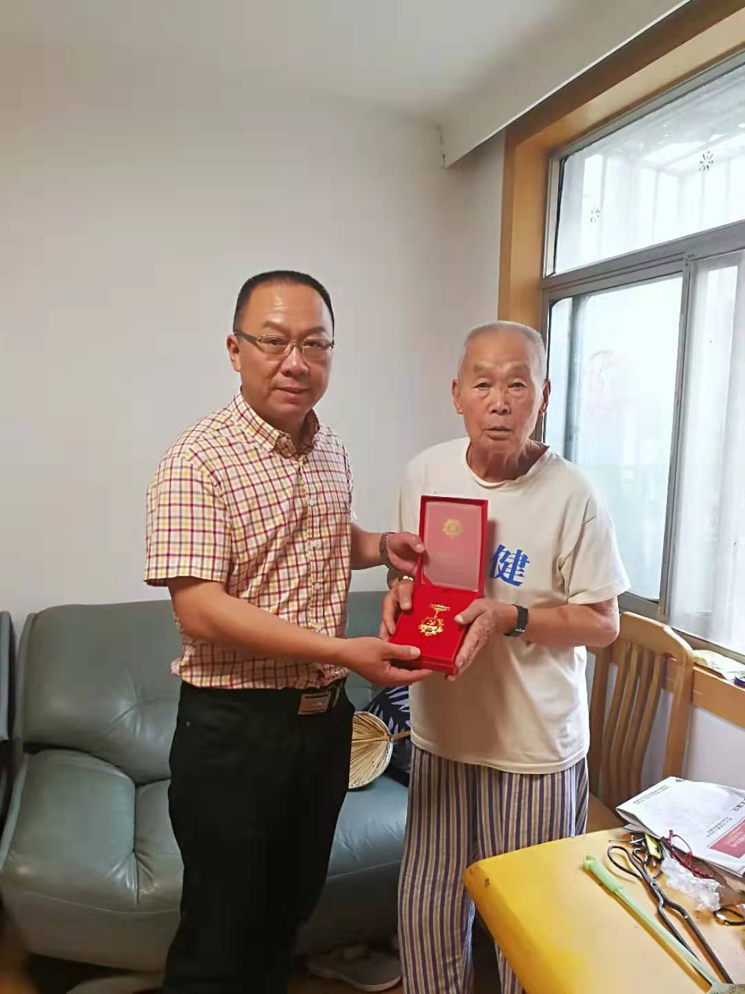 为充分体现汽车检测事业部党支部对离休老干部的关心关爱,在庆祝建党100周年之际,事业部党支部书记李强同志等一行给离休老干部周林送去慰问,向他颁发了“光荣在党50年”纪念章。
