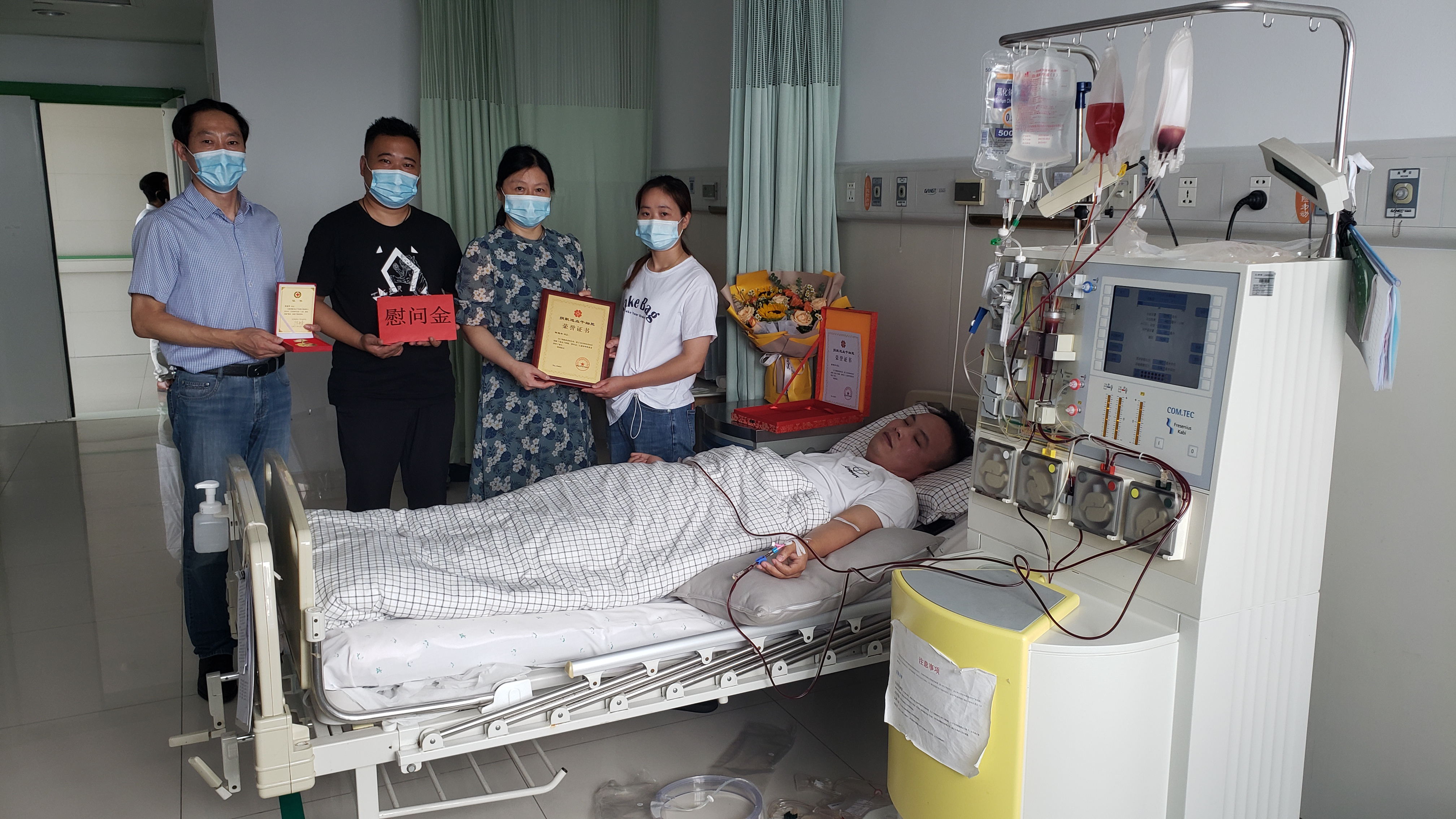 8月2日上午9时许,汽服公司出租汽车事业部90后的哥周建华躺在连云港市第一人民医院血液科的采集床上,两个手臂都上插着管子,“血细胞分离机”正从他身上抽取着鲜红的血液,分离出来的造血干细胞混悬液一点一点流入到采血袋中,中午13:40分,256毫升的造血干细胞混悬液成功完成采集,周建华成为海州区第14例,连云港市第38例造血干细胞捐献者。