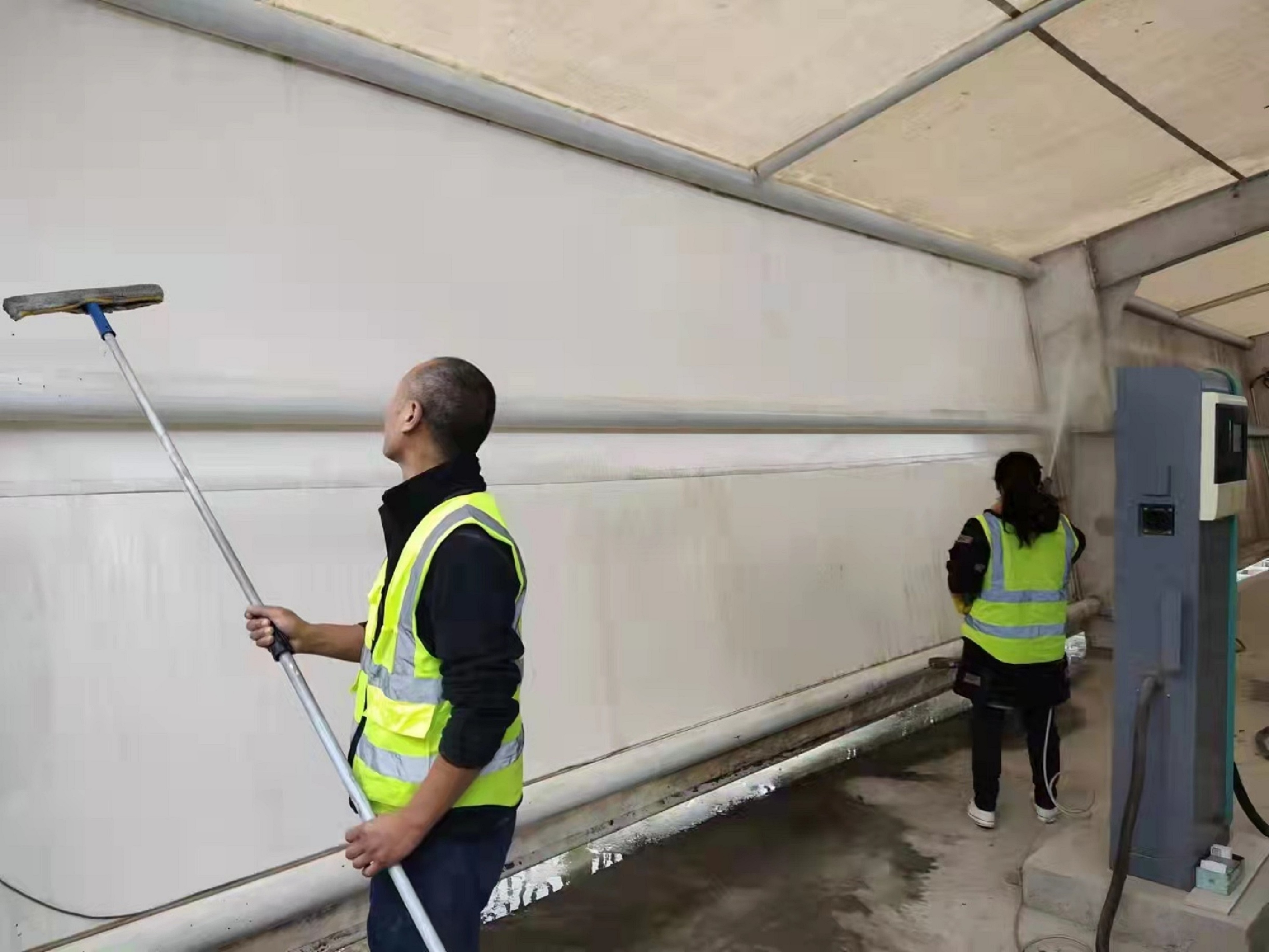 为改善公司一线充电场站环境卫生,营造整洁、舒适的充电环境,11月7日,明茂公司对灌南充电场站雨棚开展清洁工作。