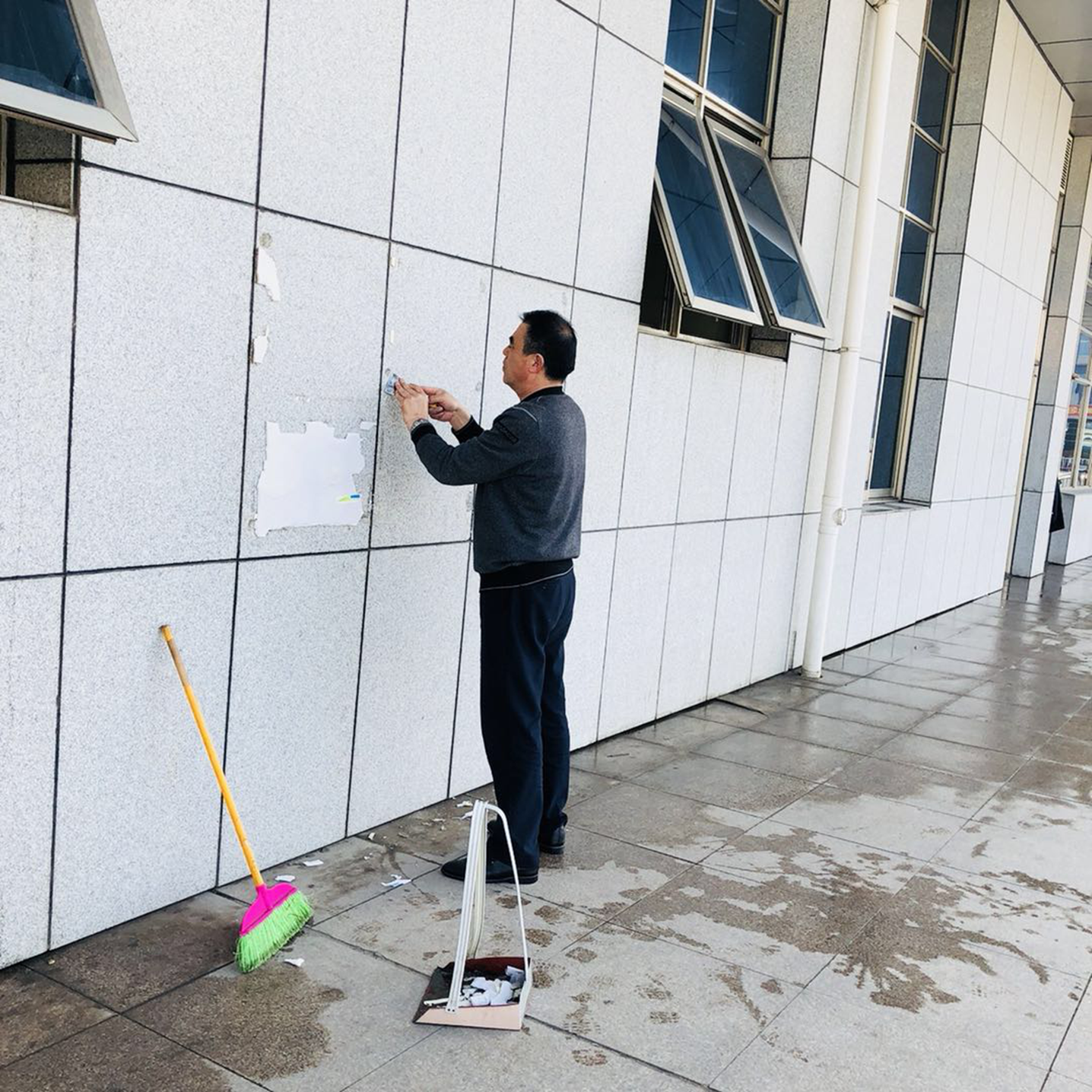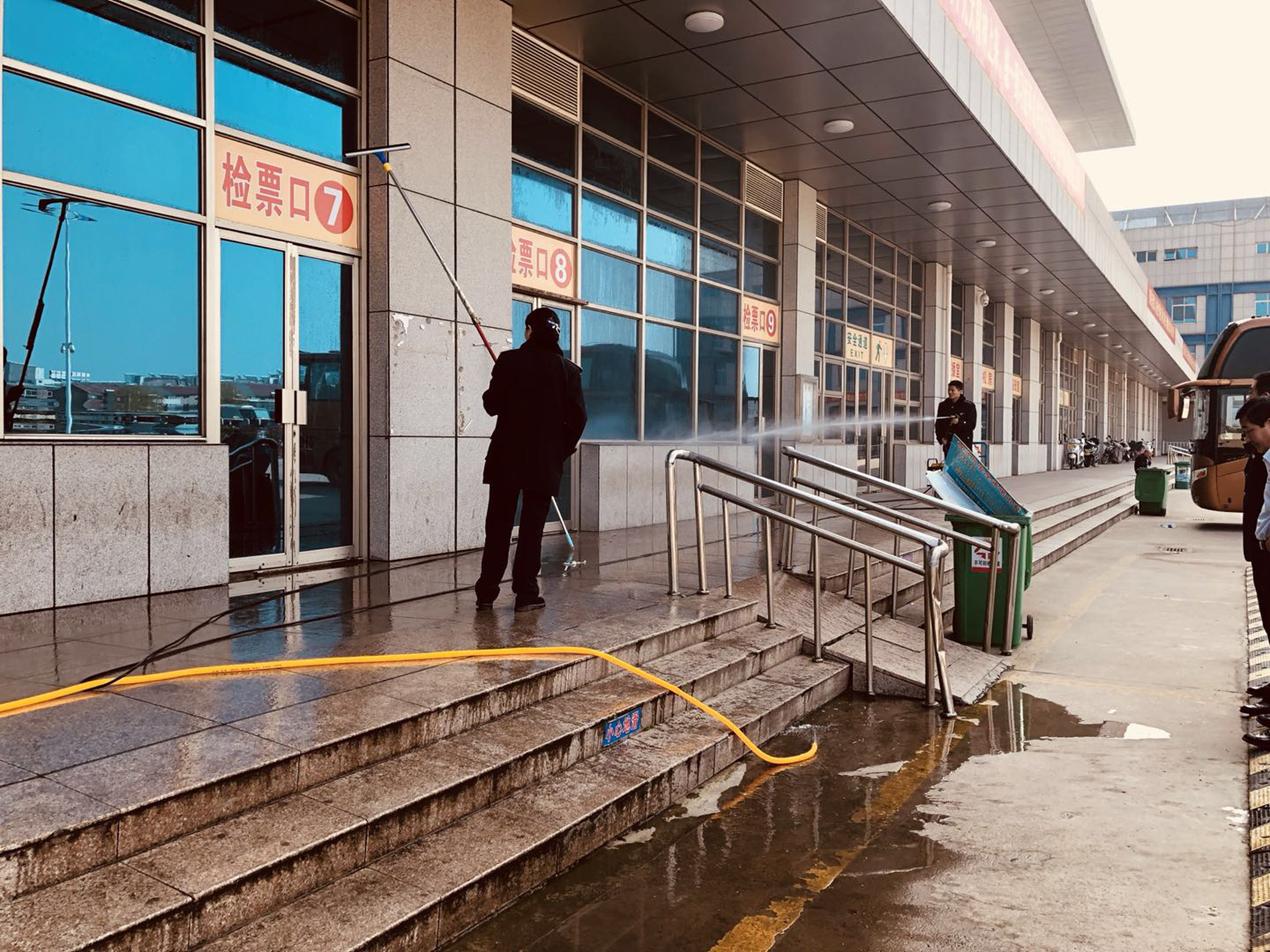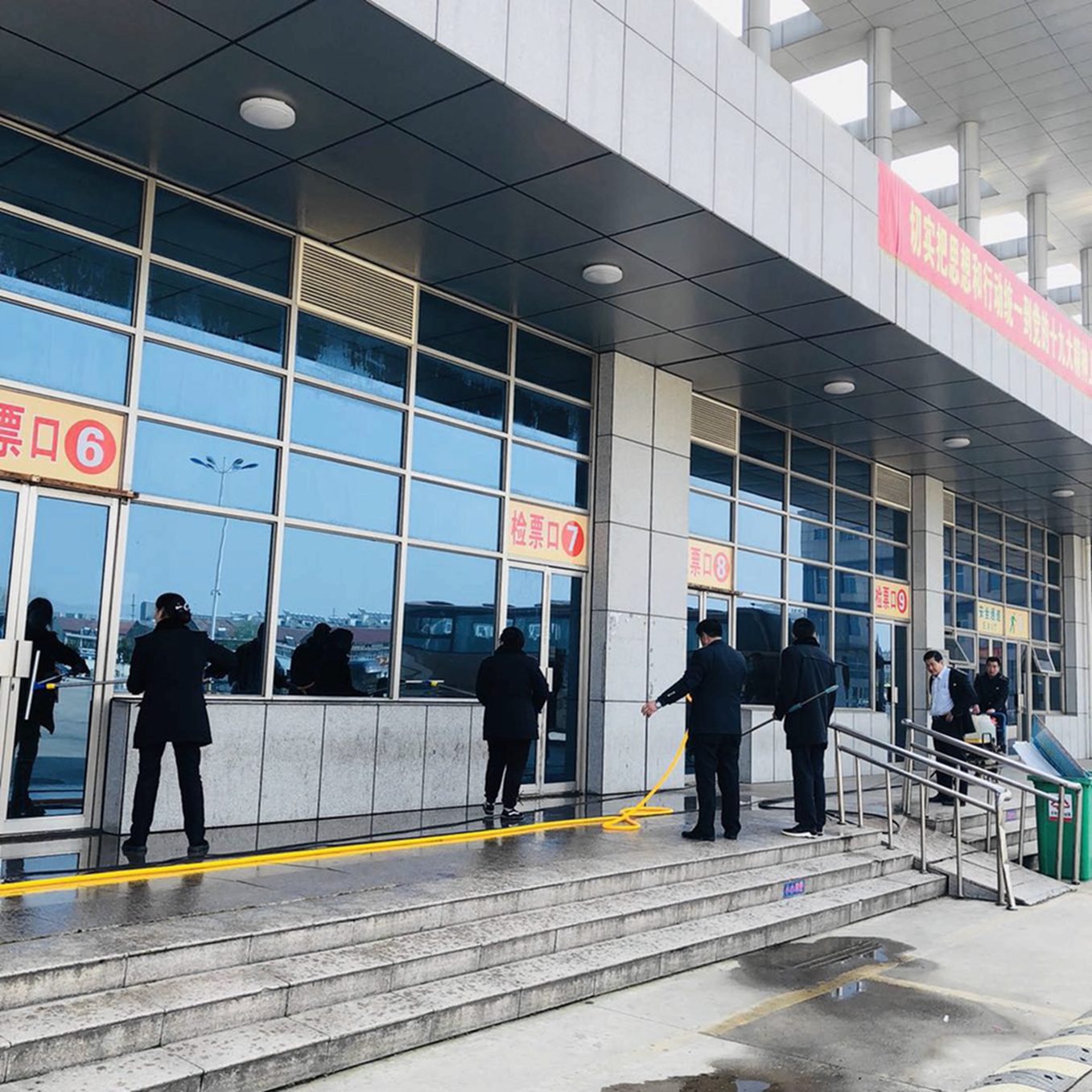 大家拿着拖把、抹布、擦窗器等工具,有的拖地擦窗,有的清洁走道护栏,有的清除站外墙壁小广告,有的清理站前广场绿化带垃圾,充分发扬了不怕脏、不怕累的精神。经过两个小时的共同努力,客运站内外窗明几净,卫生面貌焕然一新。