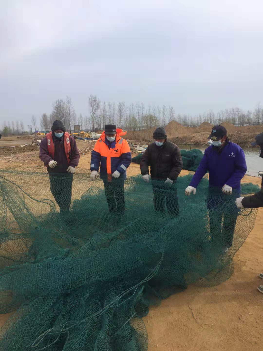 疫情期间,渔业码头实行全封闭管理,工作人员设置警示牌和隔离墩,禁止外来人员进场。作业人员,按照要求带好口罩,并认真、仔细的目视检查好网衣,确保网衣完好无损,下水作业时穿好救生衣,确保现场作业安全施工。巡库人员不辞辛劳,加强白天巡视,防止周边村民下网捕鱼。